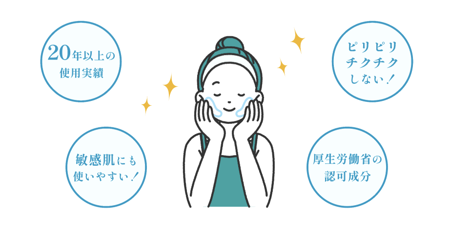 グリチルリチン酸は、優れた効果と安全性から敏感肌の方でも使用できます。この成分は、高い抗炎症作用を持ち、敏感肌で起こりやすい赤みや炎症を鎮める効果が期待できます。また、「ピリピリ」「チクチク」といった皮膚への一時刺激を和らげる作用も報告されており、安全性が高く刺激が少ない成分とされています。